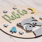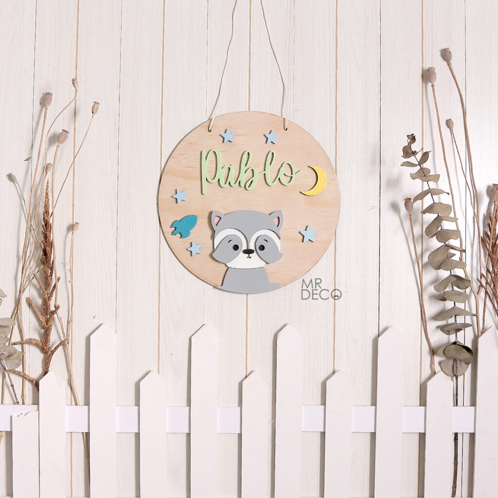 Fabricado en madera de pino de entre aprox 3 y 4 mm, incluye hilo de algodón para colgar.